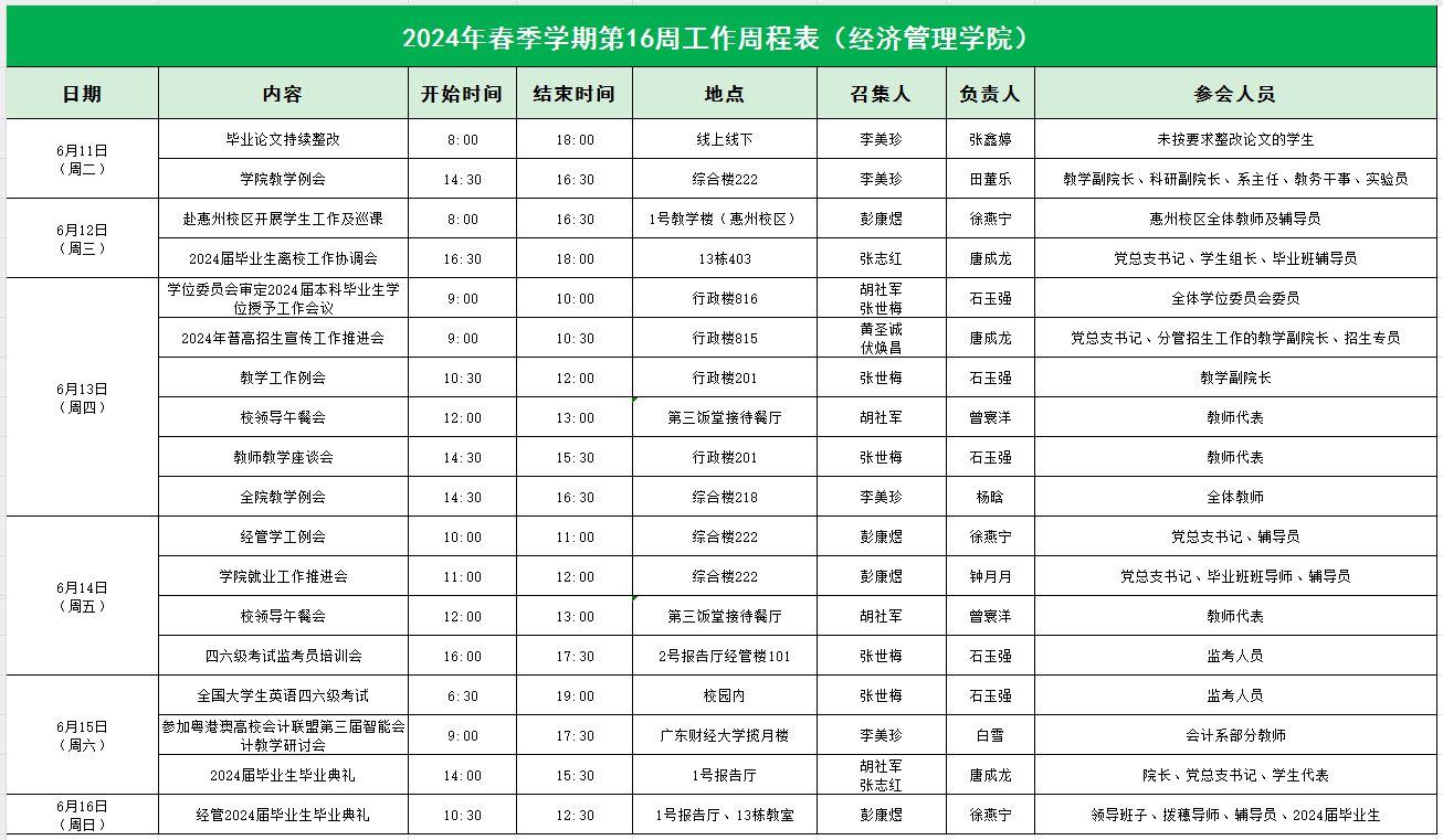 2024年春季学期第16周工作周程表