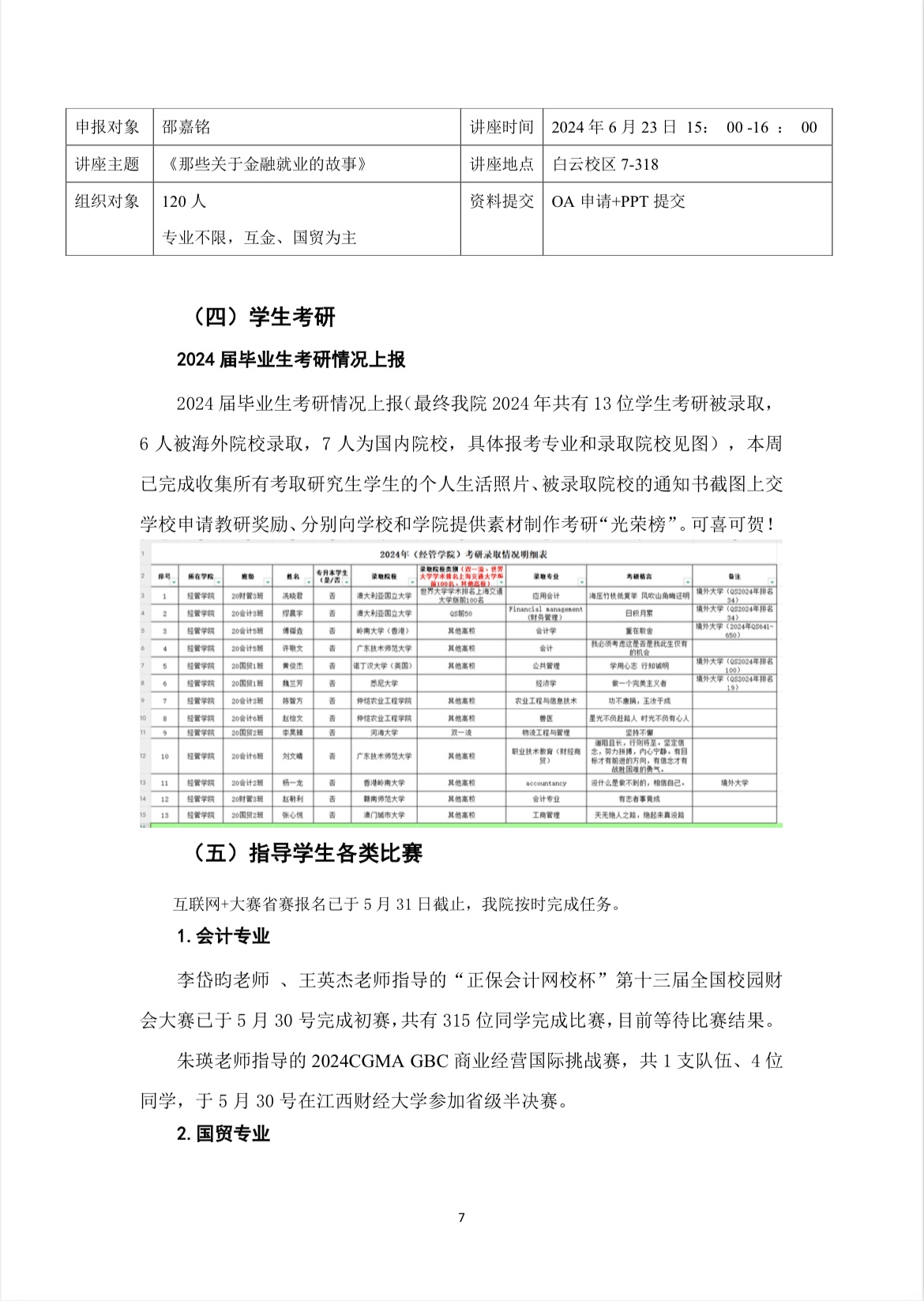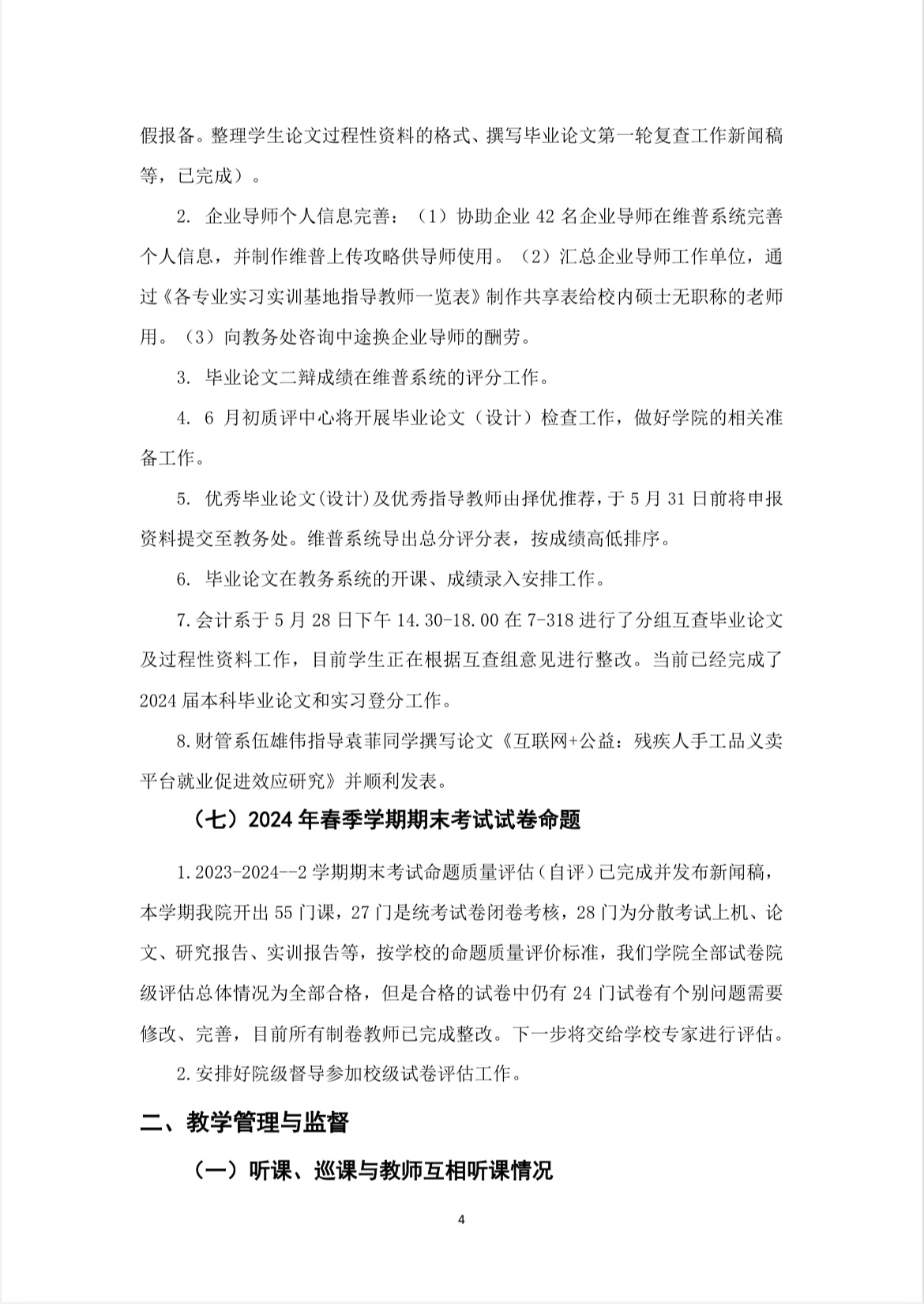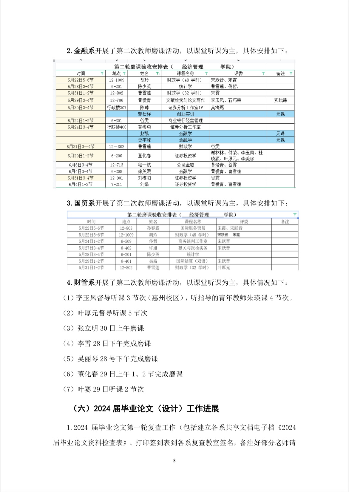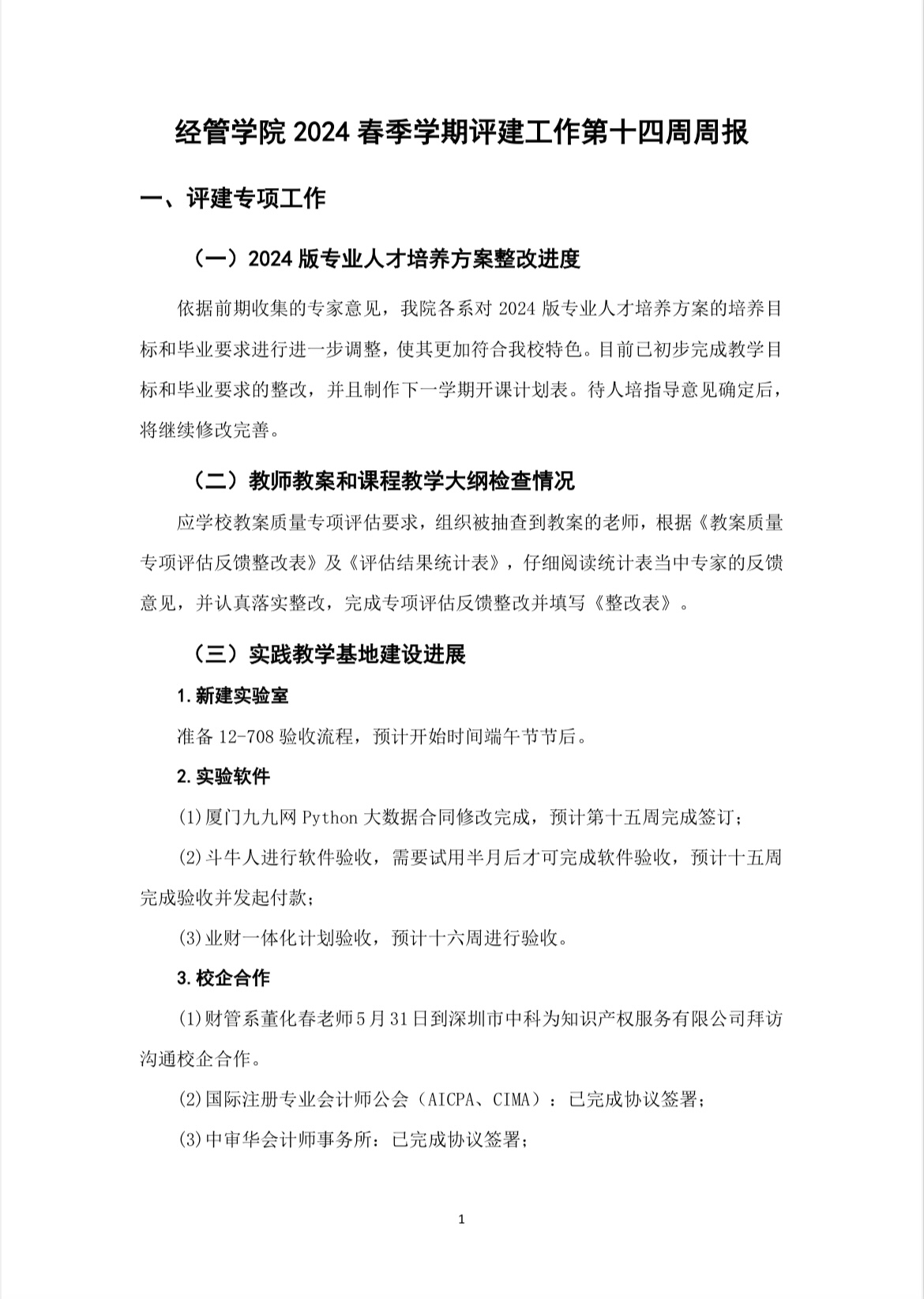 经管公司2024春季学期第十四周评建工作周报