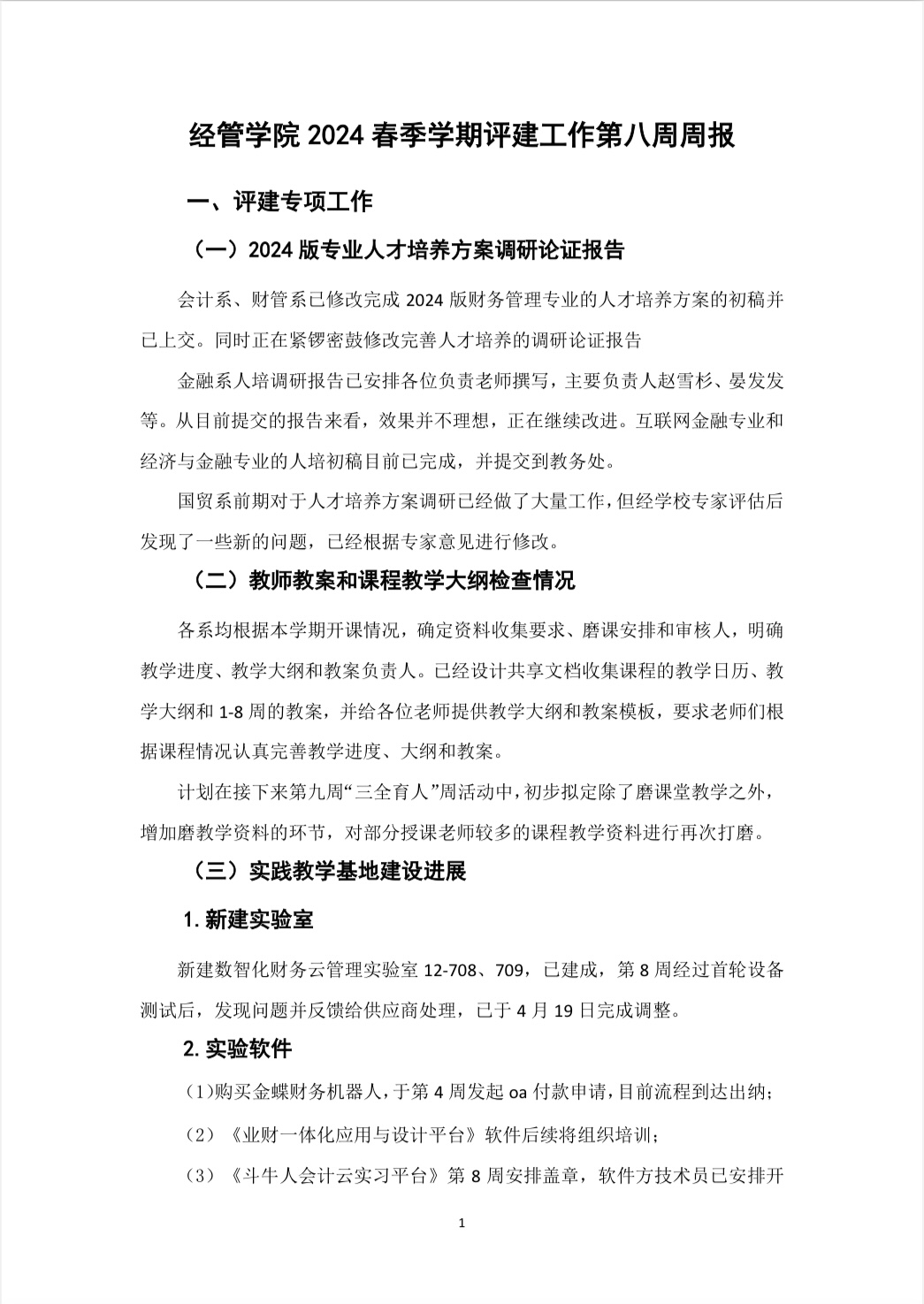 经管公司2024春季学期评建工作第八周周报