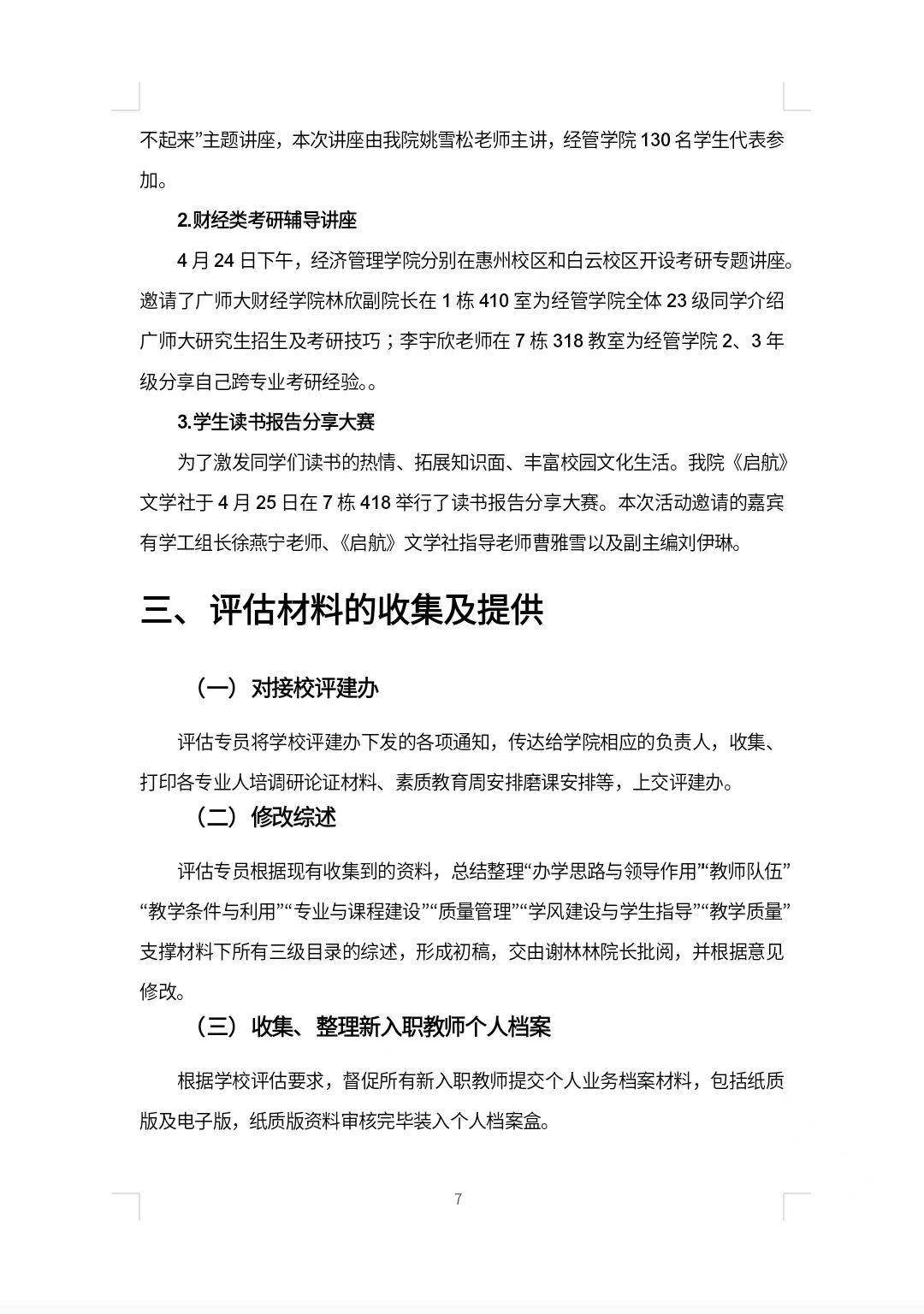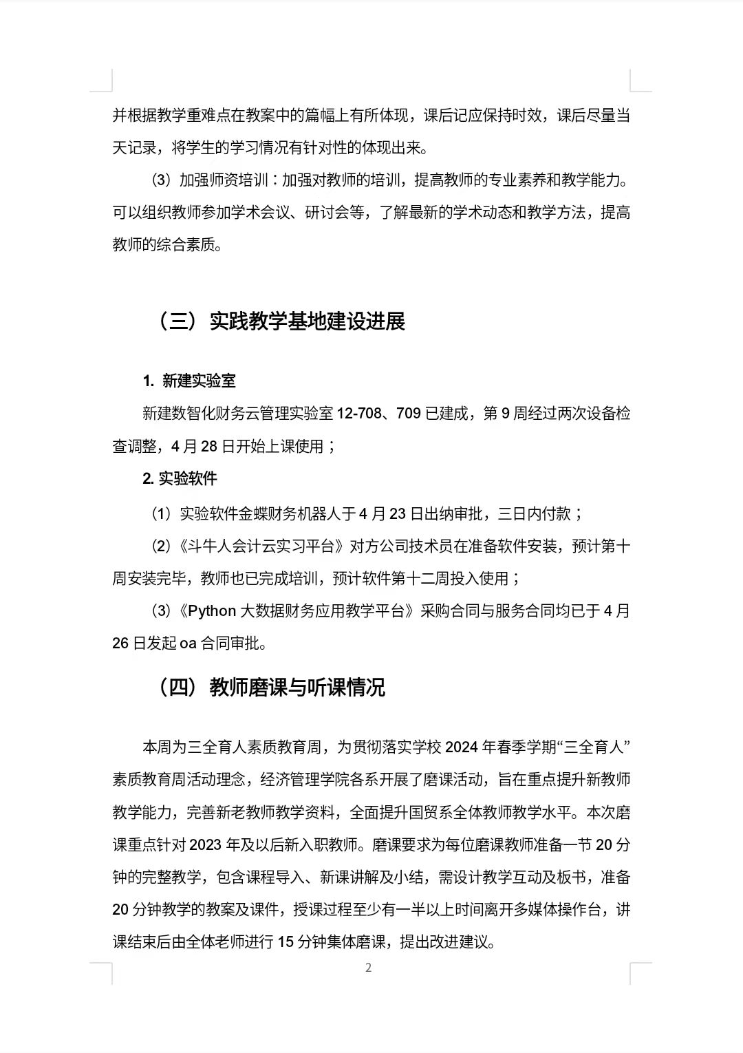 经管公司2024春季学期评建工作第九周周报