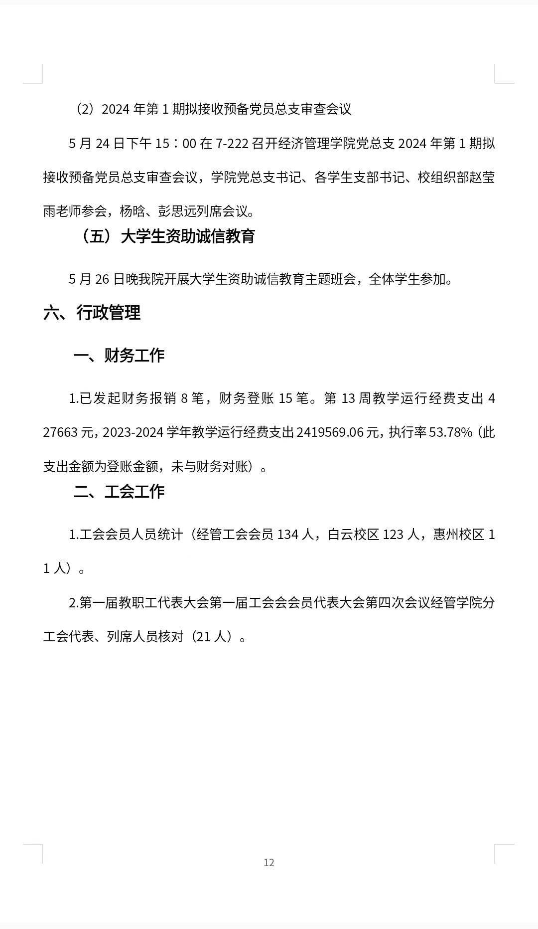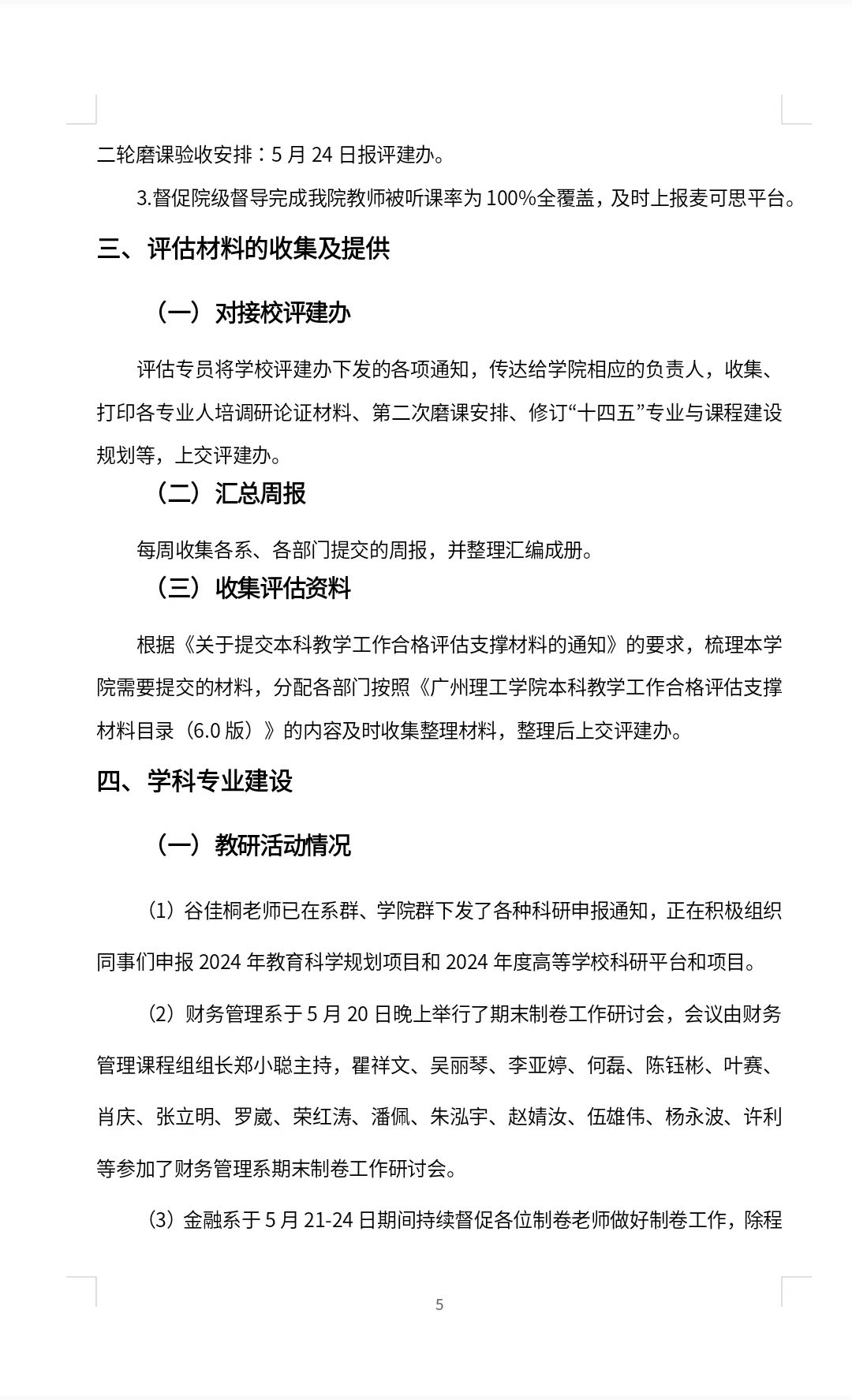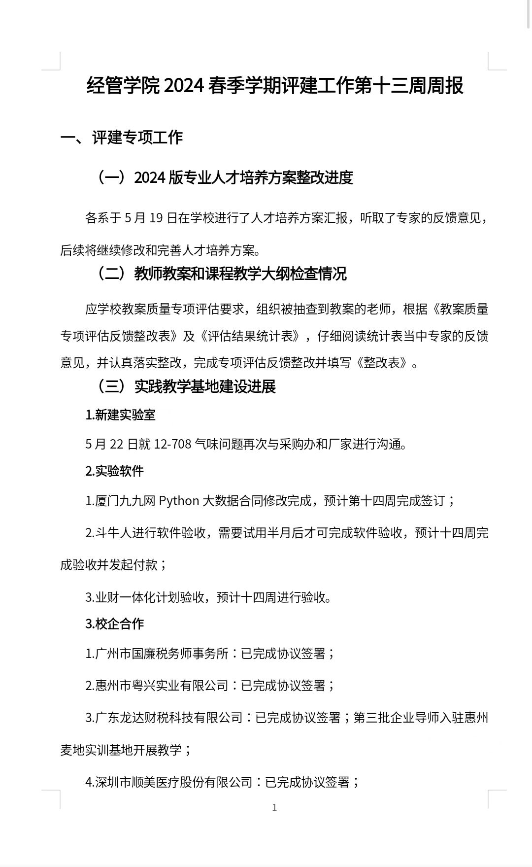 经管公司2024春季学期评建工作第十三周周报