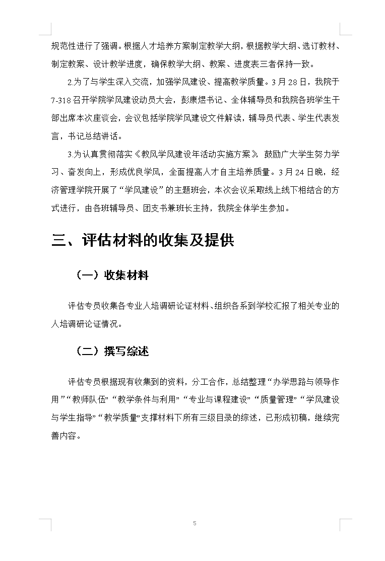 经管公司2024春季学期评建工作第五周周报
