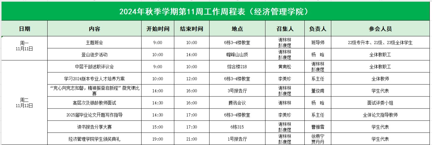 2024年秋季学期第11周工作周程表
