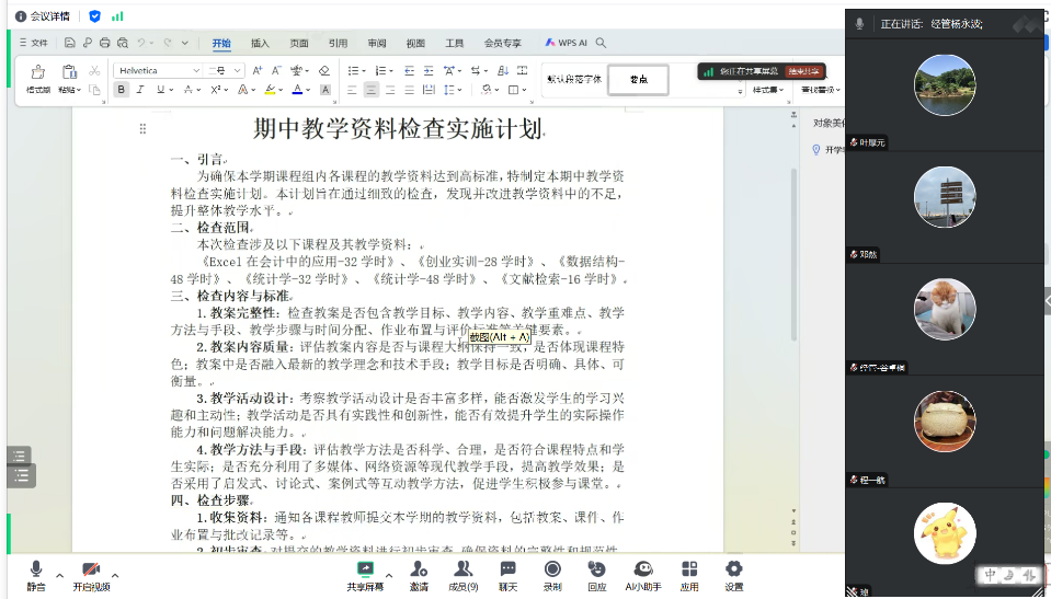 (通讯员:杨永波)11月13日,随着“三全育人”素质教育周的深入推进,统计学课程组线上成功召开了课程组教研活动。此次会议旨在全面总结期中教学准备工作,评估考核的基本情况,并深入探讨备课、上课以及听课等教学环节,进一步提升教学质量和育人效果。会议由课程组长杨永波老师主持,统计学课程组全体成员出席会议。