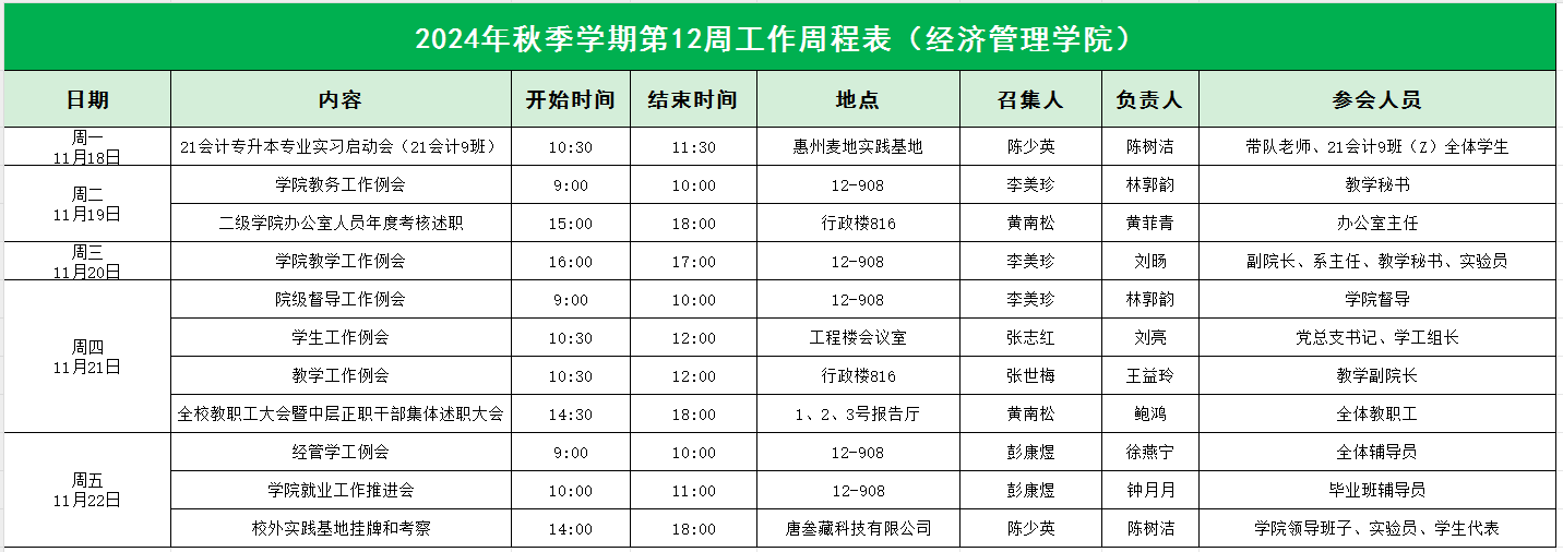 2024年秋季学期第12周工作周程表