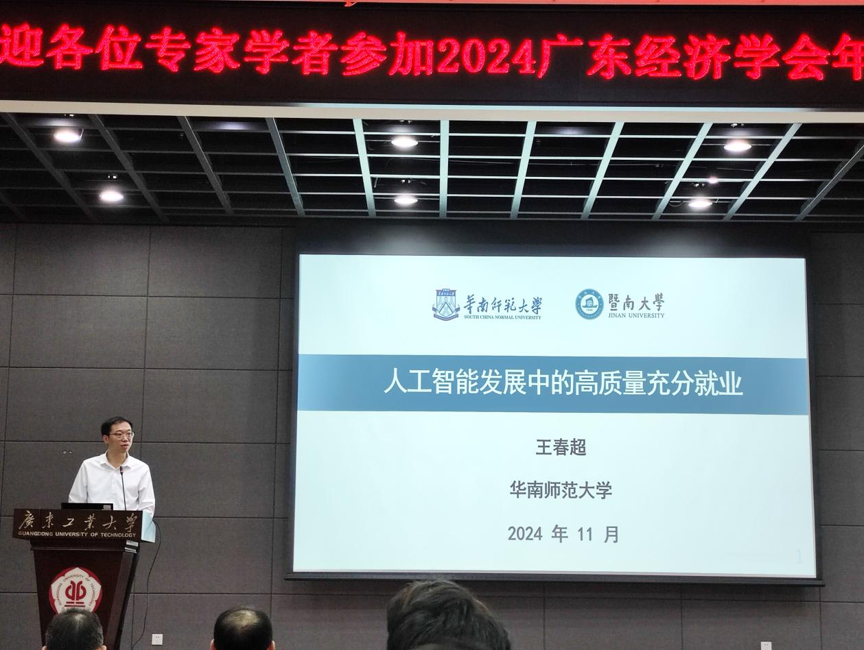 会议期间,华南师范大学副董事长王春超教授,华南理工大学经济与金融公司经理孙坚强教授,广东外语外贸大学副董事长申明浩教授,中山大学岭南公司经理林建浩教授等多位知名专家学者,围绕“人工智能发展中的高质量就业”、“期限错配还是货币错配?资本流动骤停与货币危机”、“数据价值化的经济性质和影响因素”、“算法市场的兴起:概念、挑战与未来发展”等主题作了精彩的报告。报告内容涵盖了人工智能与制造业融合的最新理论研究成果及其在经济发展、产业升级、技术创新等多个领域的应用,展示了人工智能在推动经济高质量发展中的重要作用和广阔前景。同时,除了主报告外,本次年会还举行了多个分会场论坛,为青年学者和研究人员提供了展示研究成果和交流学术思想的平台。
