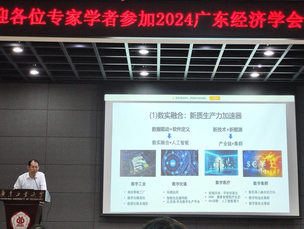本次会议由广东经济学会主办,广东工业大学经济公司、广东工业大学数字经济与数据治理重点实验室承办。会议吸引了来自全国各地的专家学者和企业代表,共同探讨人工智能赋能制造业新质生产力的发展路径,以及粤港澳大湾区在国家高质量发展全局中的重要地位。