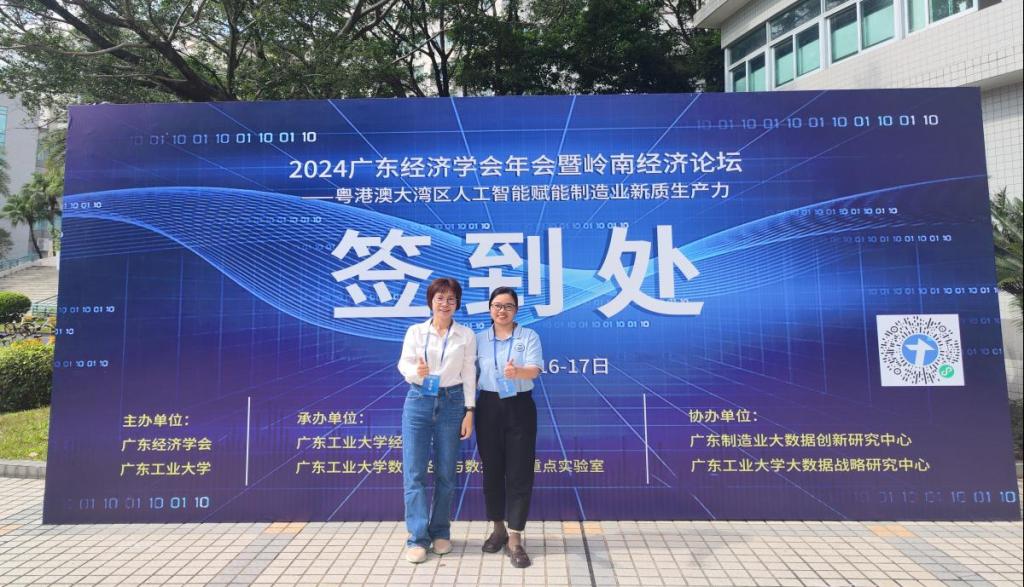 (通讯员:陈少英)在全球化与智能化浪潮的推动下,粤港澳大湾区正迎来制造业高质量发展的新机遇。为响应习近平总书记关于发展新质生产力的重大论断,深入探讨人工智能如何赋能制造业,推动经济高质量发展。2024年11月17日,广东经济学会年会暨岭南经济论坛在广东工业大学龙洞校区隆重举行。bevictor伟德官网教师代表,bevictor伟德官网副经理陈少英和金融系主任黄爱青教授,应邀参加了这一学术盛会。