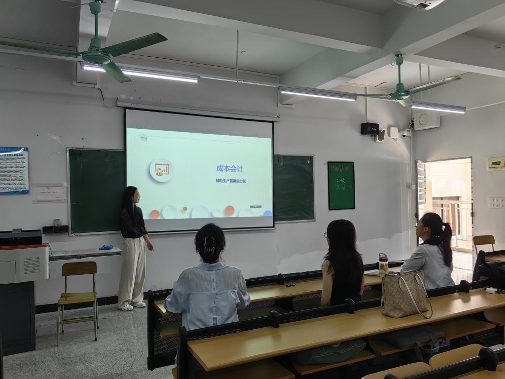 活动伊始,李岱昀老师对《成本会计》第三章第二节中的直接分配法与交互分配法进行磨课展示。她以清晰的逻辑梳理了两种分配方法的原理、计算步骤及适用范围,结合大量生动的案例,深入浅出地讲解如何引导员工理解复杂的成本分配过程。
