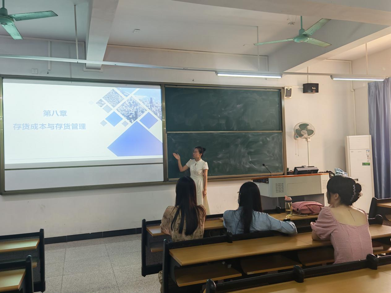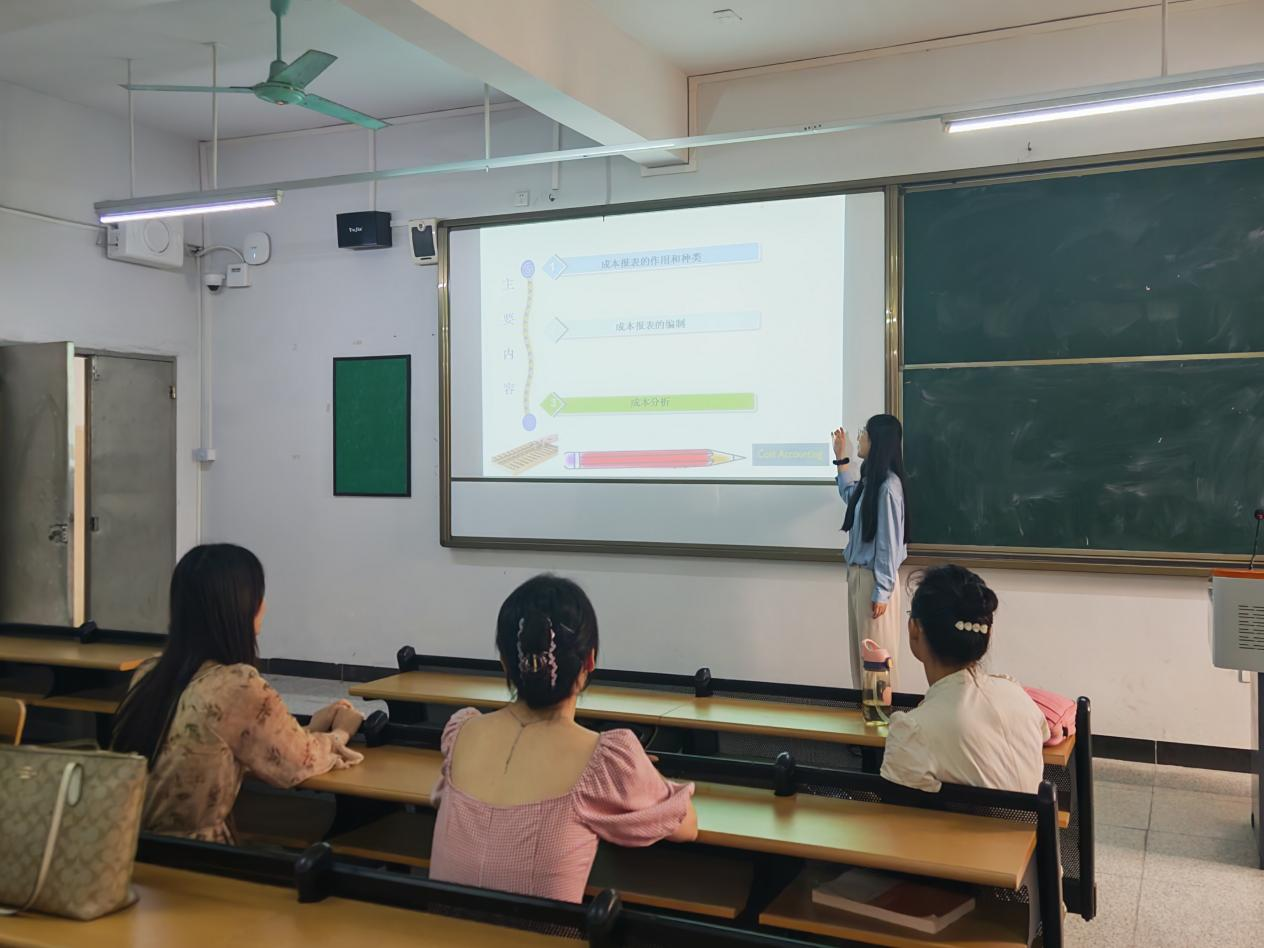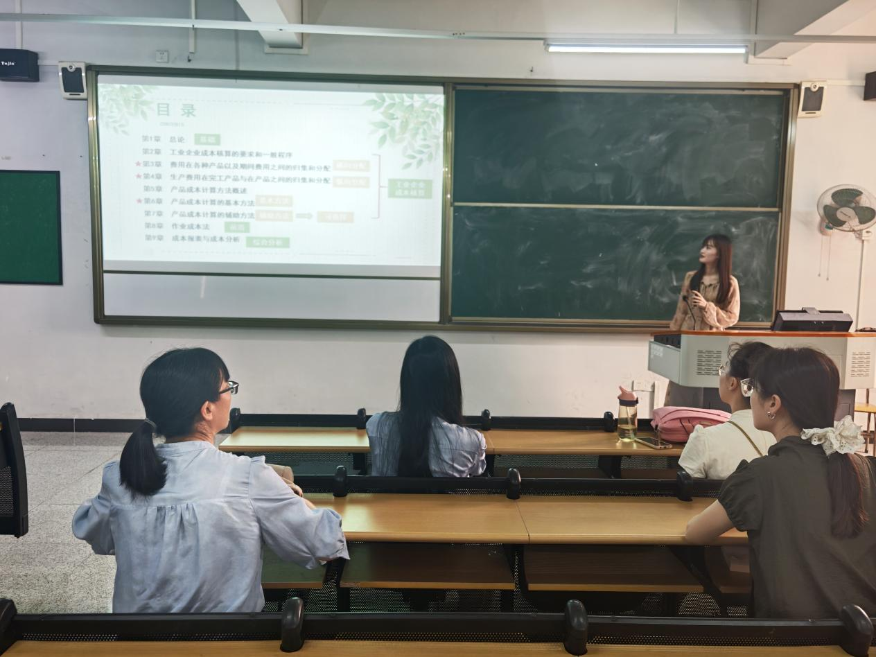 随后,三位老师依次开展授课演练。高可茵老师率先对《成本会计》课程进行深入回顾,重点聚焦第3章费用在各种产品及期间费用之间的归集和分配、第4章生产费用在完工产品与在产品之间的归集和分配、第6章产品成本计算的基本方法》等关键章节。高老师凭借丰富的教学经验,结合实际案例,将复杂的成本归集与分配原理讲解得深入浅出,让在场教师对课程重点有了更清晰的认识。