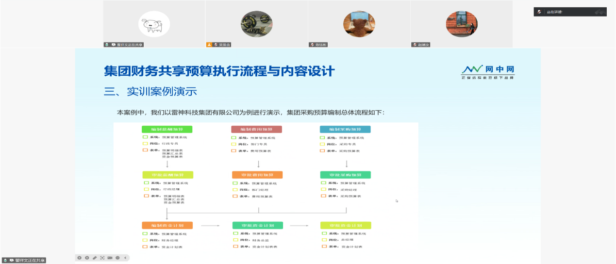 瞿祥文老师以“集团共享预算管理”为核心,现场演示了财务共享平台中的预算编制全流程。通过雷神科技集团案例,瞿老师逐步拆解了薪酬预算、费用预算、采购预算及资金计划表在共享系统中的操作要点。磨课重点围绕“如何让员工清晰理解业财数据在共享平台中的集成与流转”展开,教师们就表单设计的直观性、系统操作的容错引导、预算调整的实务情景模拟等展开热烈讨论,优化了实训环节的分层任务设计。