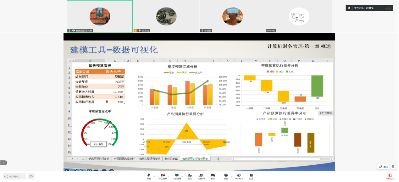 赵婧汝老师则针对《计算机财务管理》课程,以“财务建模方法”为核心展开教学展示。她以“假期旅行预算规划”为生活化案例,引导员工理解Excel工具在数据逻辑分析中的应用,并现场演示如何利用Excel构建投资决策模型、营收预测图表及现金流动态仪表盘。赵老师还分享了“项目式学习”案例,强调课程致力于培养员工利用IT工具进行财务定量分析与智能决策的核心竞争力。