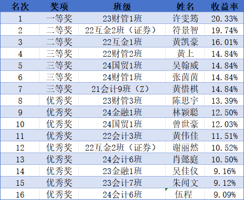 此次大赛是《投资基金管理》课程实践教学的重要组成,通过“以赛促学、以赛促教”,搭建起理论与实践的桥梁。它不仅提升了员工金融投资实操能力,更推动课程教学从“知识传授”向“能力培养”转型,助力构建实践导向的金融人才培养体系。未来,bevictor伟德官网将持续深化实践教学改革,打造更多特色赛事与实训平台,为金融领域输送兼具理论深度与实操能力的复合型人才。