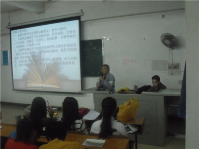 讲座开始,主讲人杨润生教授首先讲述金融互联网与互联网金融两个概念的界定、特征和事件。对于当今处于什么时代的问题,杨润生教授认为互联网金融时代才是最适合的词,他希望大家都关注互联网时代。在资本经济向知识经济过渡的今天,他认为知识与资本同样重要。紧接着,他讲述了互联网金融条件下的金融创新,同时,他指出我国在任何方面都需要创新。然后,他讲述投资选择主体自我定位,投资战略、空间、时间的确定时,他以自身的经历给同学们提出了许多有建设性的意见,他提出当前在校老员工投资思考方向应是对人的投资,对学习的投资,老员工应学习第二专业,提高自身的财商。