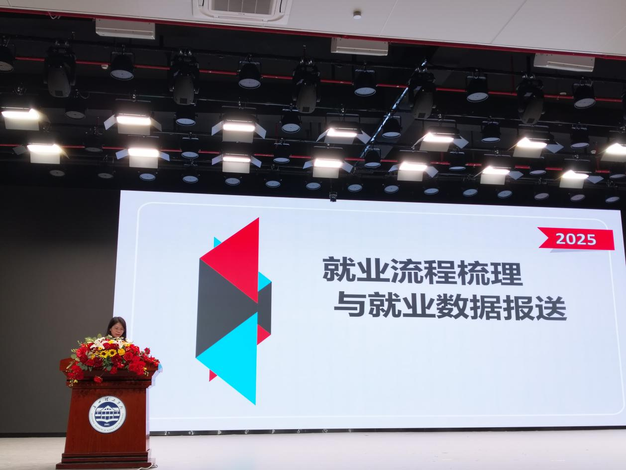 接着,辅导员范娇婷从员工管理的角度,对同学们在实习期间的学习、生活及心理调适等方面给予了贴心指导。她提醒同学们要主动与指导老师、辅导员保持沟通,及时反馈实习情况,遇到问题积极寻求帮助。最后,她表示她将一如既往地做好服务工作,为同学们的实习和就业提供有力保障。