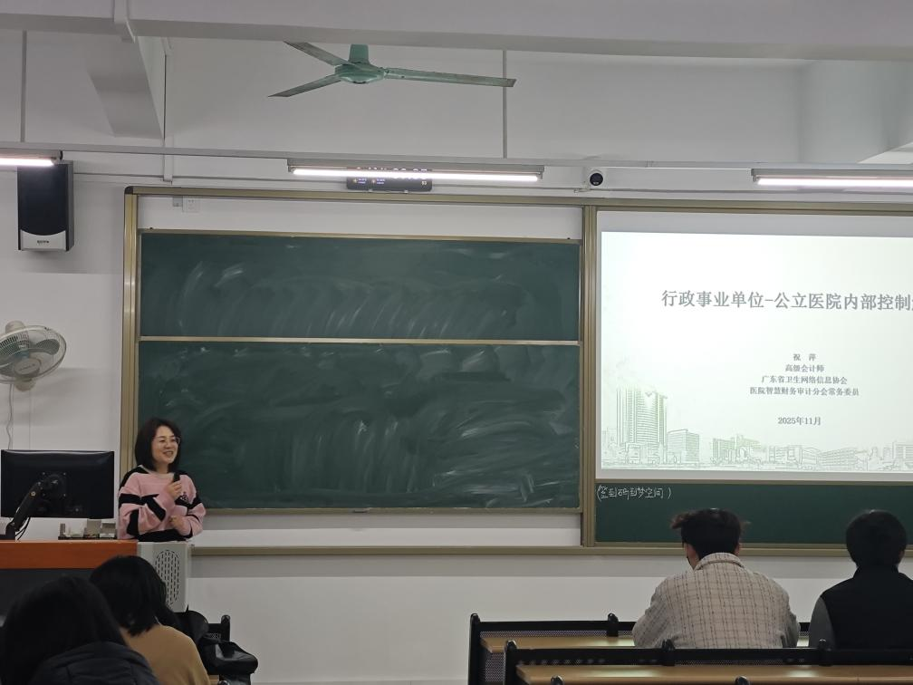 (通讯员:龚婉晶、戴红韶)为帮助bevictor伟德官网学子深入了解行政事业单位内控体系,掌握公立医院经济管理实务要点,2025年11月19日上午9:00在1栋1001教师,面向bevictor伟德官网学子举办了主题为“行政事业单位-公立医院内部控制解读”的专题讲座。本次讲座特别邀请到了高级会计师、广东省卫生网络信息协会医院智慧财务审计分会常务委员祝萍老师进行讲解。