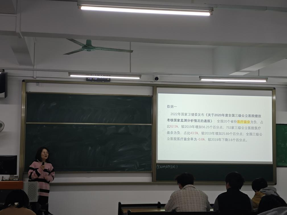 讲座伊始,祝萍老师以2022年国家卫健委三级公立医院绩效数据为切入点,用“全国20省份医疗盈余为负、超四成三级医院亏损”的现实案例,向同学们阐释了公立医院内控管理对化解运营风险的重要性,让理论知识与行业现状建立起直观关联。