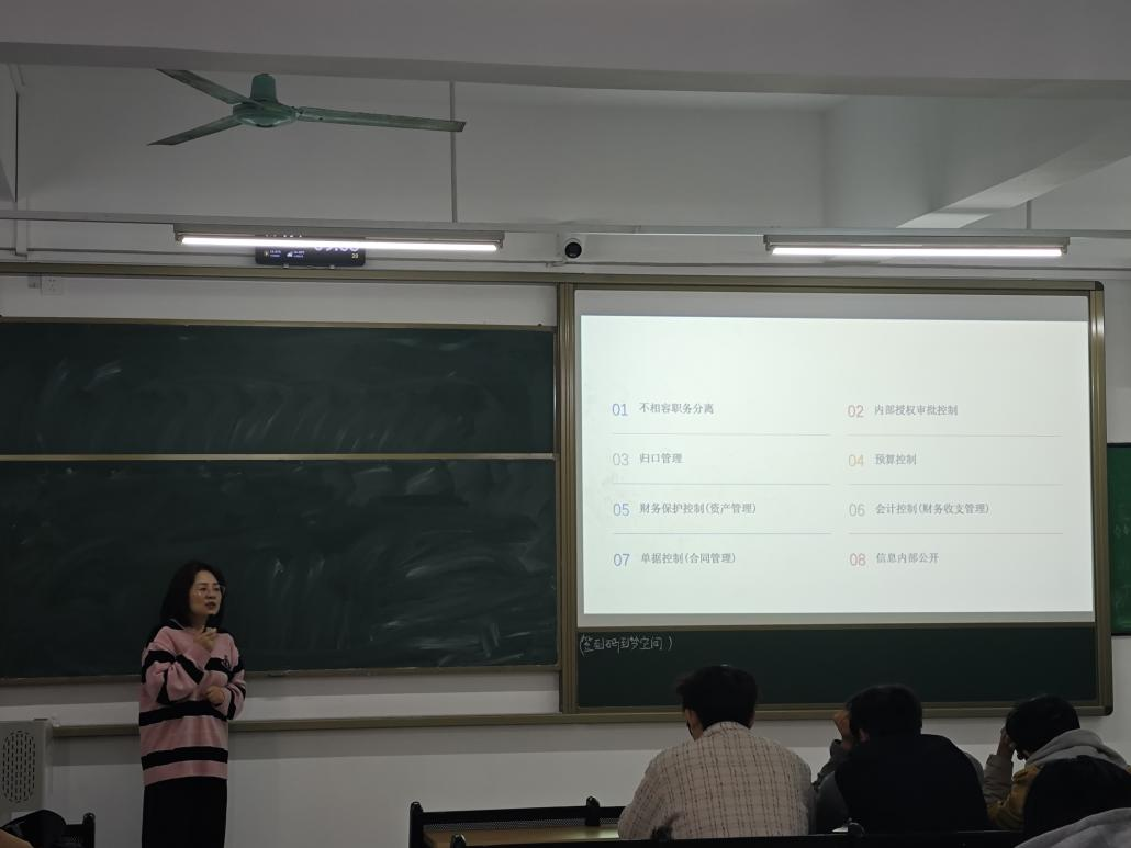 在核心内容讲解环节,祝萍老师围绕“公益性原则下的内控定义”展开,明确其“保障资产安全、规范经济活动、提升服务效能”的目标,并详细拆解了不相容职务分离、预算控制、会计控制等8项内控关键措施,通过实务场景举例,让同学们清晰把握公立医院经济管理的实操逻辑。