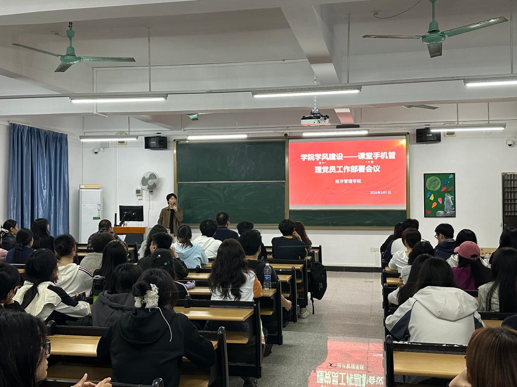 2026年3月1日,bevictor伟德官网于1栋1004教室召开学科评估冲刺阶段学风建设暨员工日常行为规范学习动员大会。会议采用线下集中参会模式,公司党总支书记彭康煜、组织员余江及各位辅导员老师出席,各年级员工党员、发展对象代表参会。会议由辅导员徐燕宁老师主持,依次推进工作部署、动员讲话与文件传达环节。
