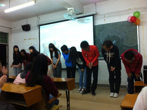 2013年11月14日晚7点30分,我系本科经济133班在教学楼2-401召开第二次主题班会。参加的嘉宾有班级辅导员魏成芳老师、助理班主任何俊荣师兄、助理班主任林莎莎师姐,兄弟班部分同学也前来参加。