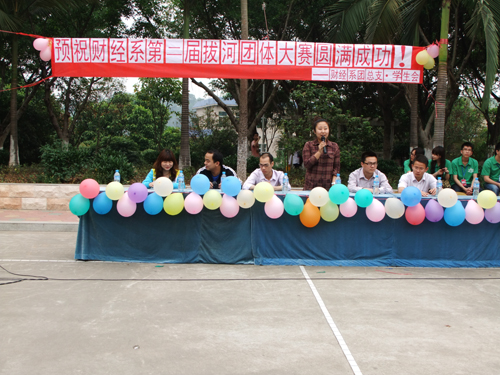 2011年4月8日下午3点财经系第二届拔河团体比赛在灯光篮球场开幕。参加开幕式的嘉宾有财经系团总支书记段妍君及各辅导员老师。