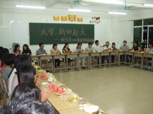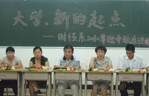 2010年9月20日晚上8点整,财经系2010年迎中秋新生座谈会在6栋409课室隆重举行。财经系主任张志红、系党总支书记杨晓文、系副主任胡智敏、系办公室主任刘亮、2010级各班辅导员及38位2010级新生代表出席了本次座谈会。