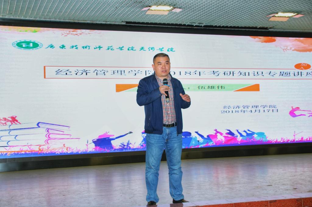 伍雄伟就考研意义、考研政策、考研途径与方法展开讲座,从定专业、选公司、备考、报考、笔试、复试、调剂等方面详细讲解了考研的步骤,希望同学们培养自信、保持乐观、积极应对、刻苦认真,扎实做好复习工作。他认为,对待考研不必过于紧张,应当扎实复习,充满自信。最后,伍老师强调,考研员工不要盲目应对,要根据自身的特点制定复习计划。