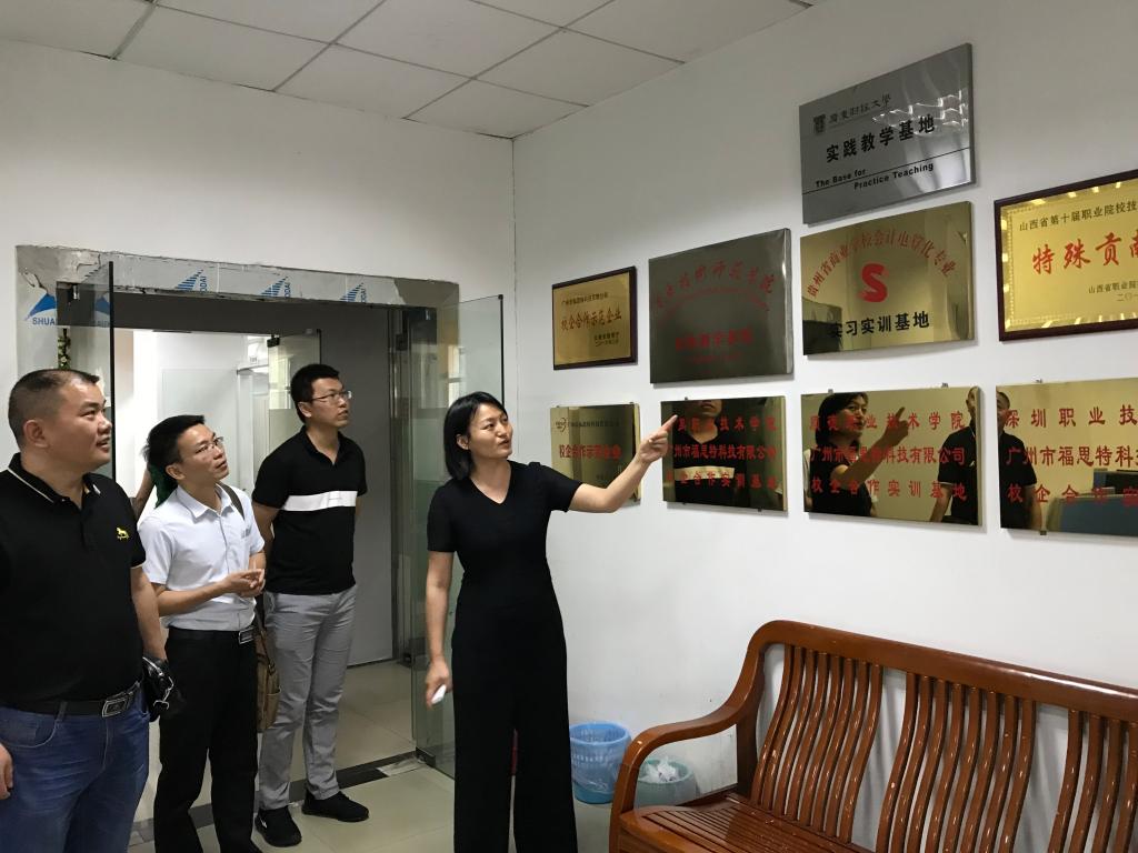 会前,在广州福思特副总经理李军女士的带领下,一起参观了公司办公室、团队培训中心、软件研发设计部门等场所。参观期间,李总给我们详细介绍公司发展历程、公司文化以及校企、政企合作情况,并表示愿意与公司继续加强沟通交流和项目衔接,保障“产学合作、协同育人”项目的顺利开展。