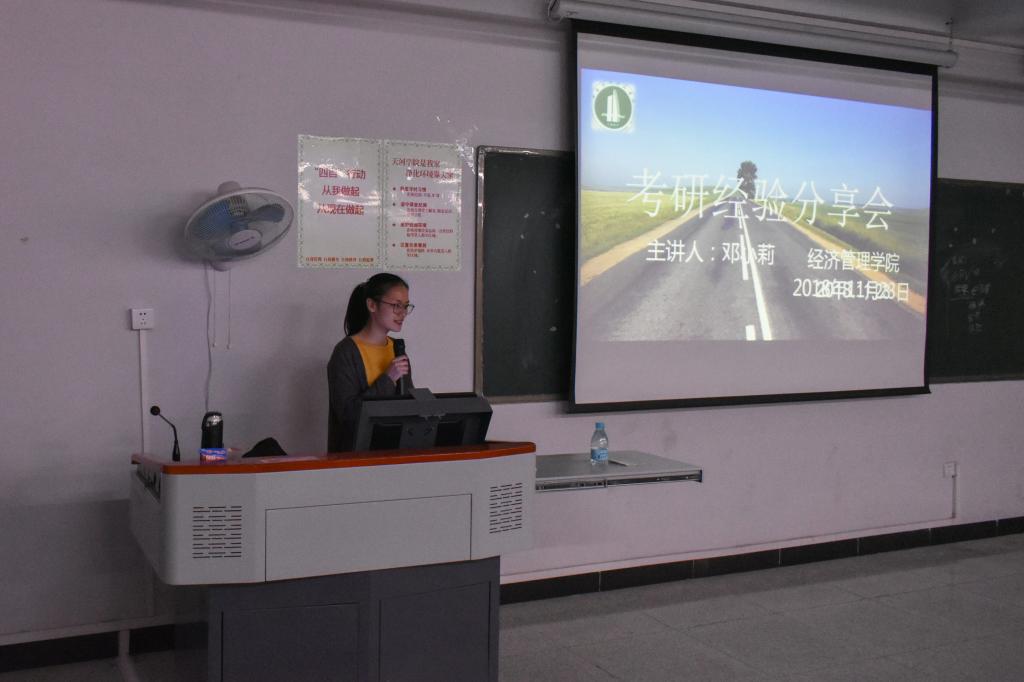颜冬果老师对2位优秀毕业生的返校交流表达了感谢,并希望在场的同学们参加完了交流分享会之后,都能够有所收获,更加明确自己的未来发展道路。接下来由优秀毕业生涂红婷、邓小莉分别上台分享了自己的职场经验和考研经历。
