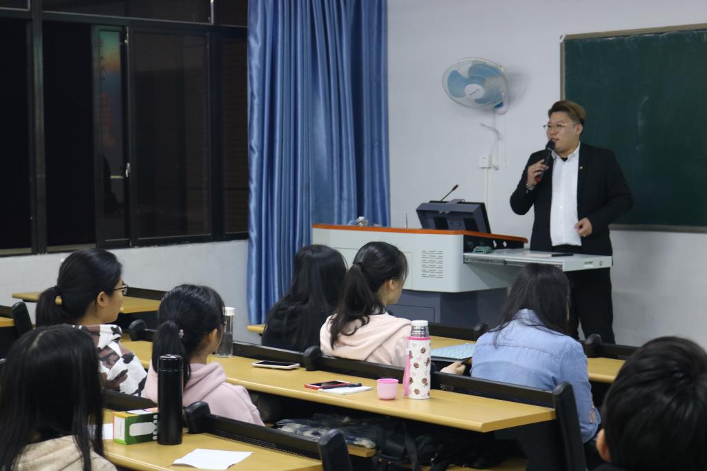 (通讯员 梁健锋)11月20日晚,泰康人寿保险有限责任公司广东分公司校园招聘宣讲会在教学楼12栋812室举行。泰康人寿黄伟婵经理、公司实验实训中心主任张建龙出席宣讲会,泰康人寿梁晓兰经理主持。