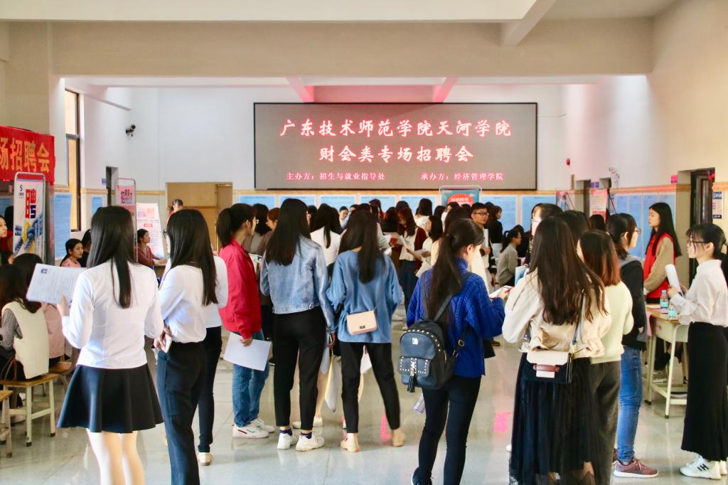此次招聘会主要是引进广州市内的18家财会类、证券类、金融类等企业,共计200多个就业岗位。前来咨询应聘的员工络绎不绝,吸引到应届毕业生和在校生近600人陆续参加应聘,更有往届优秀毕业生返校参与本次招聘会,与师弟师妹们交流分享他们的求职心得。招聘企业有针对性地面向公司会计学、财务管理专业员工提供了助理会计、财税专员、工商税务专员、业务会计、行政助理、证券客户经理等岗位。为了让员工进一步了解招聘企业的公司文化、岗位需求、任职要求、工作待遇等内容,招聘会前公司特意组织员工参加了企业招聘宣讲会,共建校企合作,帮助毕业生深入了解企业岗位类型及任职需求,持续助力2019届毕业生顺利就业。