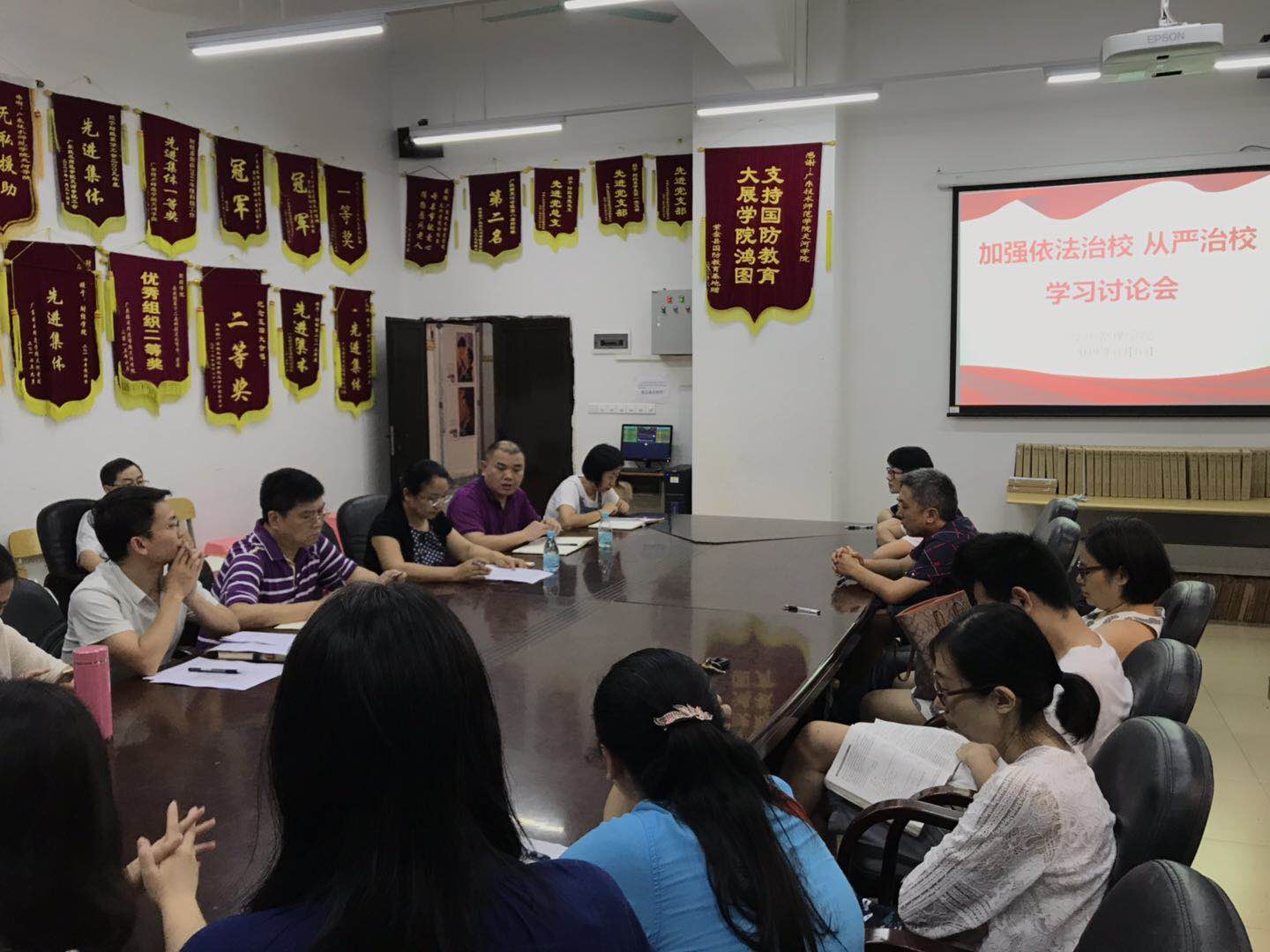 (通讯员 张建龙)6月6日下午,为牢固树立依法治校的办学理念,不断增强教师法治观念,公司组织召开专题学习研讨会,学习讨论公司中层干部会议精神,传达公司关于加强依法治校从严治校的决定,研究制定工作方案和措施。全体教师参加了此次学习研讨会。
