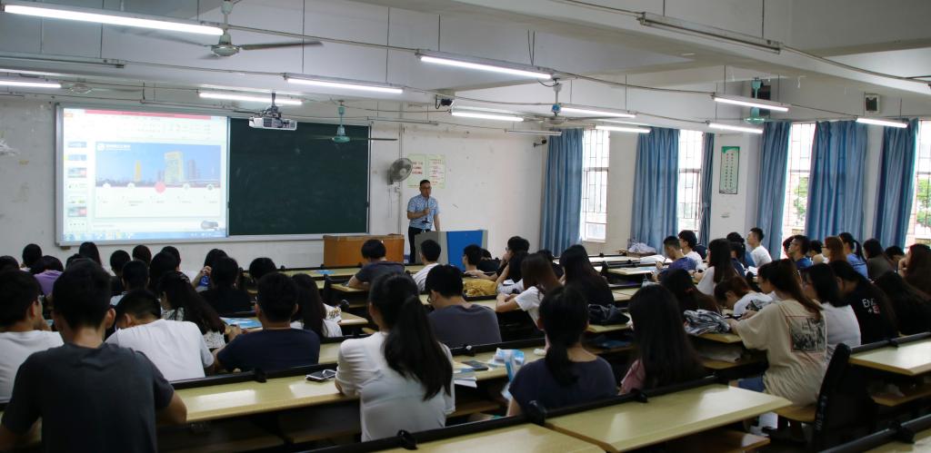 罗兴维经理就此次大赛的赛程、竞赛形式、时间安排、竞赛内容、报名方式以及大赛奖励给同学们作了详细讲解。同时他还对同学们进行了风险教育,为员工讲解期货市场的风险,并且建议员工在校期间不要开立期货账户。最后为同学们进行了期货投资分析、期权投资分析、K线图分析、投资基本功等内容的知识讲解,阐述了期货投资者所面临的五大风险(价格风险,代理风险,交易风险,交割风险以及投资者自身因素导致的风险),分享了期货市场丰富的交易经验,赢得了在场同学们的阵阵掌声。
