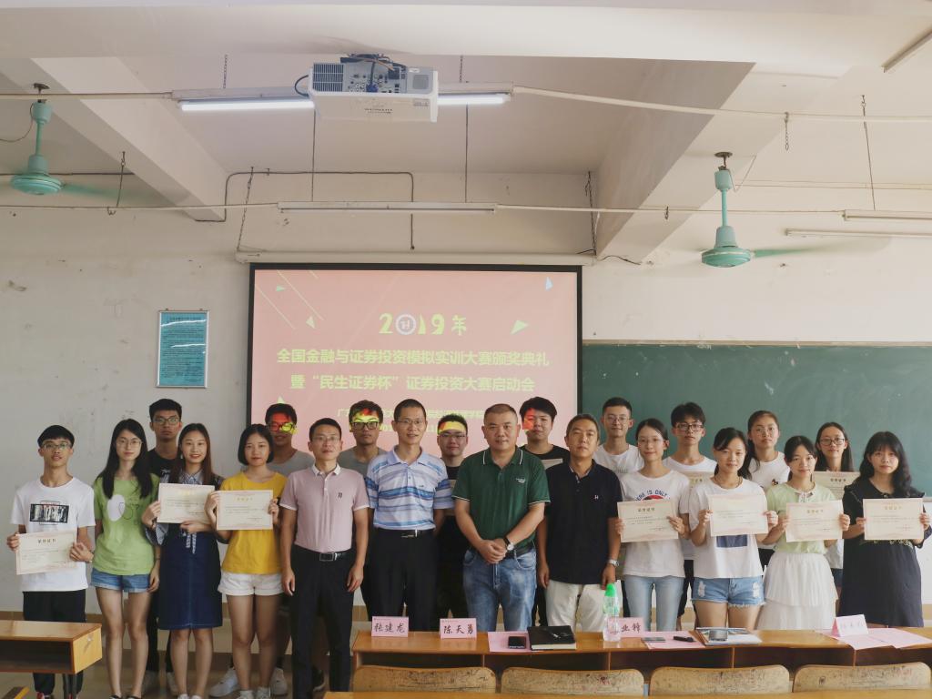 (通讯员 张建龙)10月11日下午,公司在7-318举行全国金融与证券投资模拟实训大赛颁奖典礼暨民生证券杯启动会。国泰安广州分公司副总经理莫业锋、公司副经理张志红、副经理陈天勇、经济系主任倪江崴出席了活动。