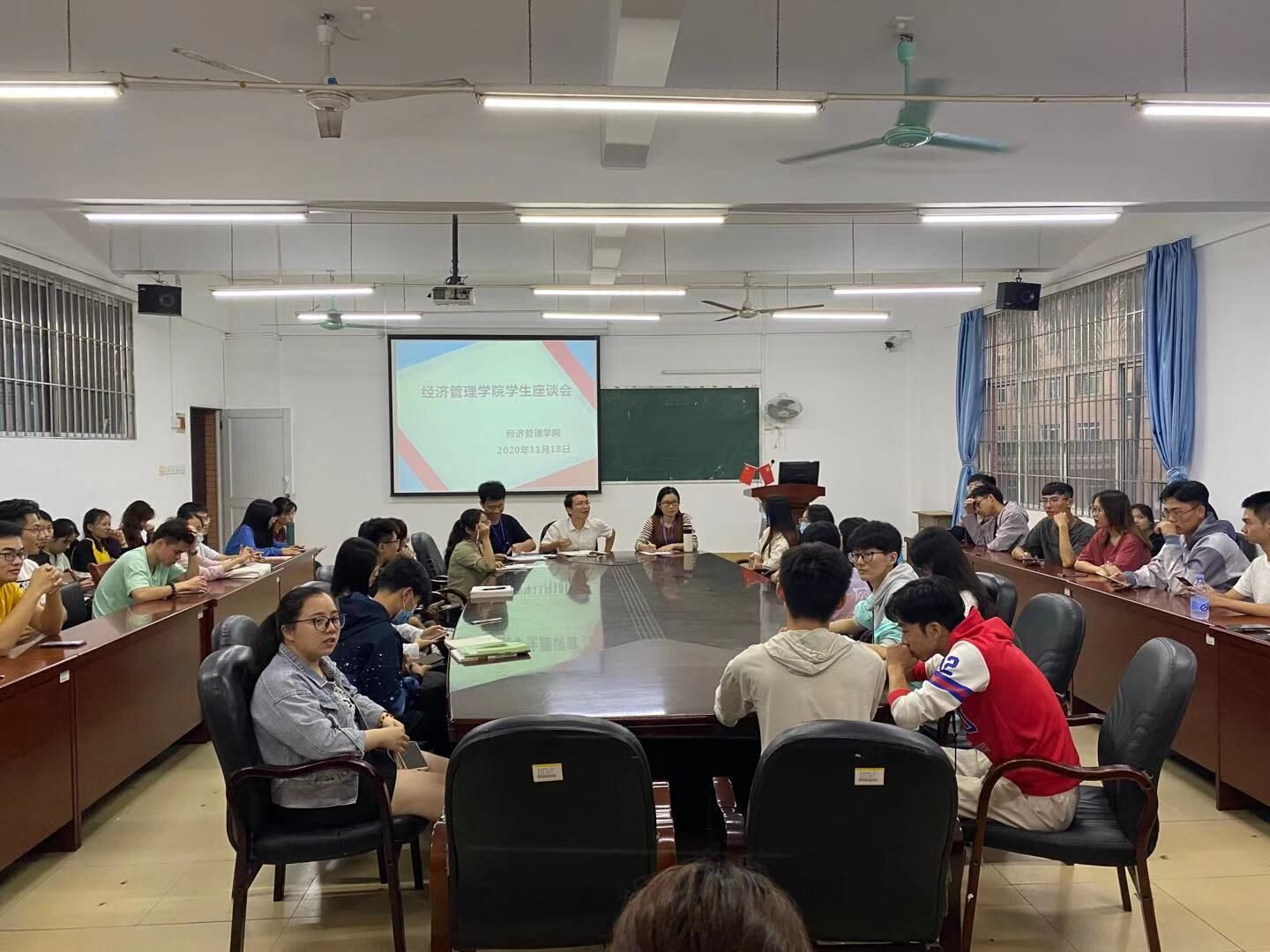 (通讯员 廖婉余)根据广州理工教函【2020】20号关于期中教学检查工作的通知要求,结合公司实际,为畅通师生沟通渠道,及时解决员工学习、生活困难,11月18日下午,公司在7-202会议室召开了普招员工代表座谈会。公司副经理李美珍、党总支书记彭康煜、副经理陈天勇、教科组长廖婉余、辅导员杨楚钰、辅导员张筱琳、辅导员刘嘉晓与全院37个普高生班级员工代表进行了座谈。座谈会由副经理李美珍主持。