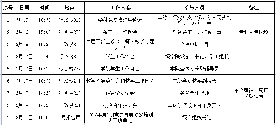 bevictor伟德官网第4周周会议及重点工作安排表