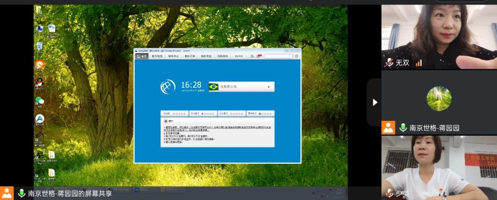 培训采用线上“腾讯会议”+线下会议室的形式开展,南京世格软件有限责任公司的技术工程师蒋圆圆通过线上的方式讲解平台功能,主要对“南京世格单一窗口软件”的综合业务功能及单一窗口实训功能进行了操作演示。参加此项培训的陈少英、吴霜、佟哲、许旭、孙春露和黄爱青等国际经济与贸易专业的任课老师结合课程建设需求,与蒋工程师针对实训平台功能、使用方式、辅助教学资源以及后续维护升级等问题进行了深入的探讨。
