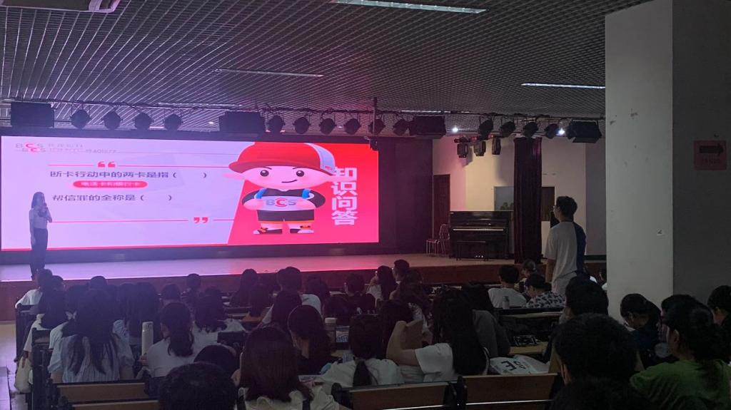 贺经理从精准识别之反诈、火眼金睛之反假、理性投资之存款三方面对相关金融知识进行了详细介绍。在讲座中她以典型案例现身说法,帮助同学们理解“何为帮信犯罪”,增强法律意识。同时,从保护老员工的切身利益出发,她为同学们推荐“五大反诈利器”,使其能够有效识别网络金融诈骗。最后,贺茜经理运用“看、摸、听、测”四招绝技帮助同学们在日常生活中有效识别真假货币,帮助同学们保护好自己的“钱袋子”。