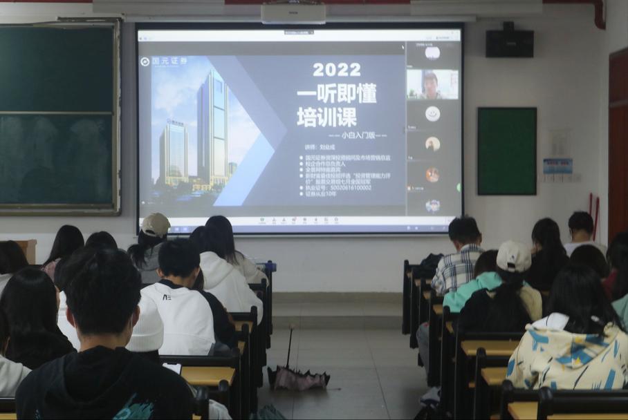 (通讯员:陈高良)11月3日下午,公司金融学术协会在13栋401举行了一场金融投资基础知识讲座。本次讲座是公司首届“国元杯”证券模拟投资大赛的辅导活动,特别邀请了公司校企合作单位国元证券股份公司的投资顾问刘业成以线上合线下相结合的方式开展。