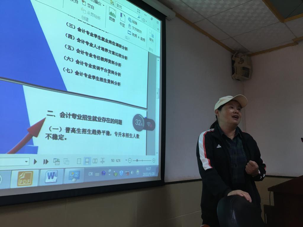 课题《人工智能+大数据分析背景下公司会计专业改革升级路径研究》负责人胡智敏老师结合当前人工智能发展对会计人员工作的挑战形势和企业对会计人才的需求,分析当前公司会计专业发展现状并提出建议。课题《课程思政多元融合的路径研究》负责人黄爱青老师和课题《财经大类多专业联动实验教学体系研究》负责人冉龙燕老师也分别对课题的研究过程和研究成果进行了详细的陈述。