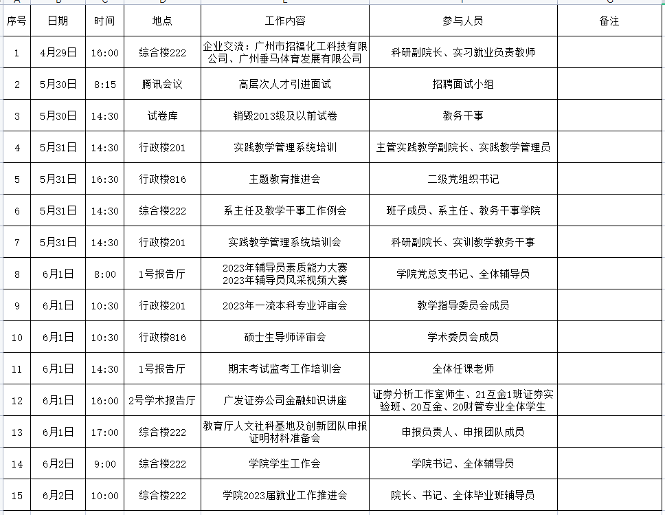 bevictor伟德官网第15周周程及重点工作安排表