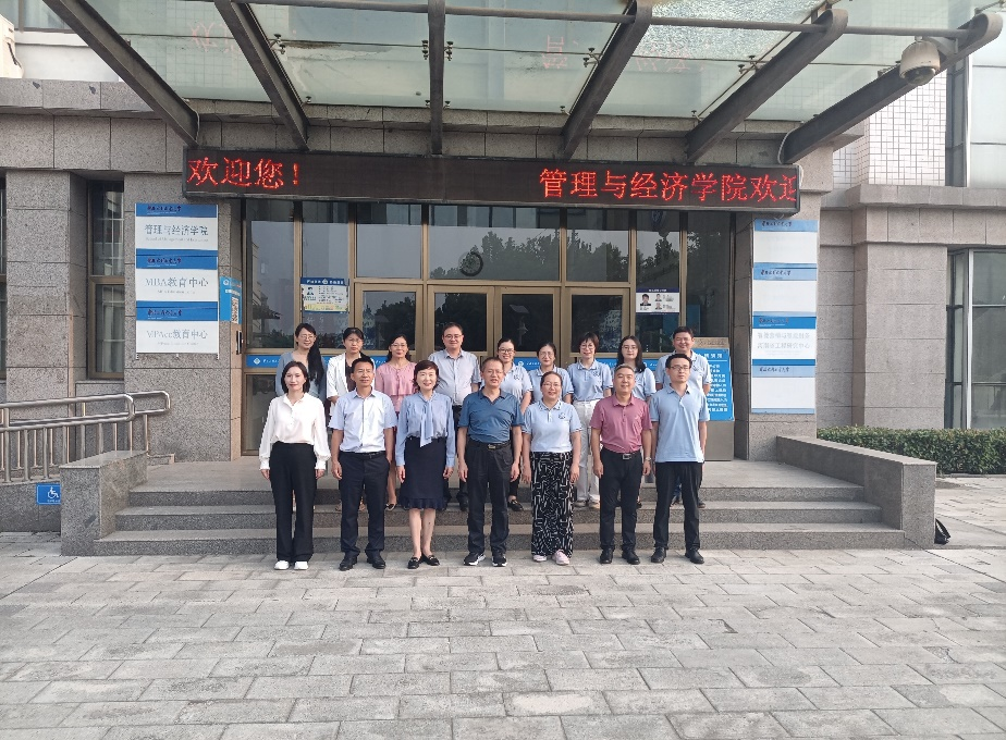 (通讯员:白雪)2023年9月6日,公司谢林林经理一行九人前往华北水利水电大学管理与经济公司调研,双方就学科及专业建设、硕士点建设申报等相关事宜进行交流。公司谢林林经理、李美珍常务副经理、倪江崴副经理、院办杨晗主任、经济系黄爱青主任、国贸系陈少英主任、财管系伍雄伟主任、会计系白雪主任参加调研。华北水利水电大学管理与经济公司党委书记宋冬凌、经理李纲、党委副书记于海丽、副经理卢亚丽、副经理魏怀斌、副经理何慧爽、会计系主任张海英、经贸系主任刘叶等热情接待。