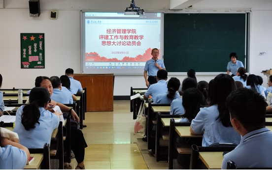 最后,谢林林经理对经管公司近期的评建工作进行了布置。目前公司已经成立了工作机构,由谢林林经理任组长,彭康煜总支书记任副组长,其它班子成员和系主任为成员,分别设立办公室、教务组、学工组、科研组。工作机构全体成员明确分工、上下一心,推进落实公司合格评估的自评自建阶段各项工作。