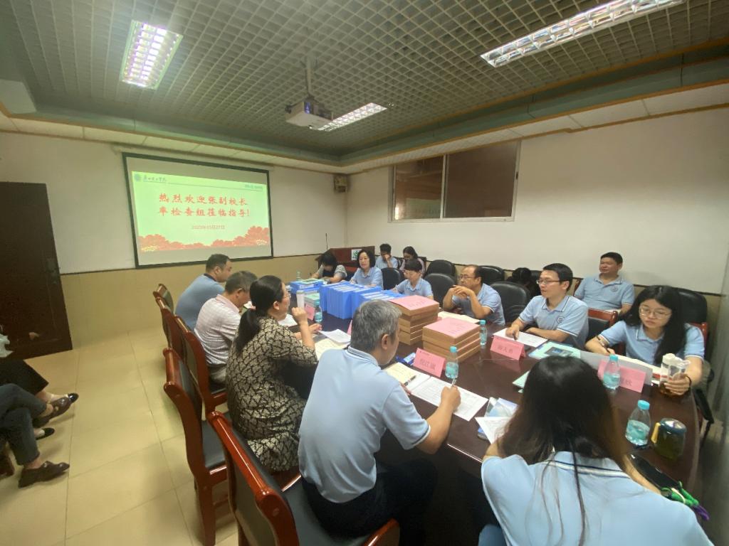 在7栋222会议室,张世梅副董事长主持了本次检查会,谢林林经理、李美珍常务副经理、彭康煜书记和倪江崴副经理等院领导及各系系主任、办公室主任、评建专员、教师代表参加了本次会议。