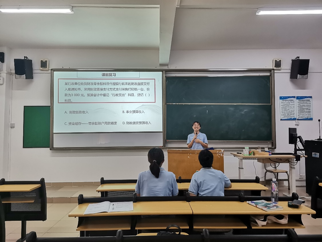 蒋心晨老师磨课的内容是《基础会计》的“负债资金筹集业务的核算“,教学设计合理,教学目标明确,讲授认真细致,重点和难点突出,语速适中,仪态端正。文颖老师磨课的内容是《行政事业单位会计》的”行政支出“,首先是课前复习,帮助员工回顾前面所学的内容,然后引出行政支出的含义,再用例题向员工讲解同一业务在财务会计和预算会计处理方式上的不同,最后用思维导图来总结本次课的知识点。