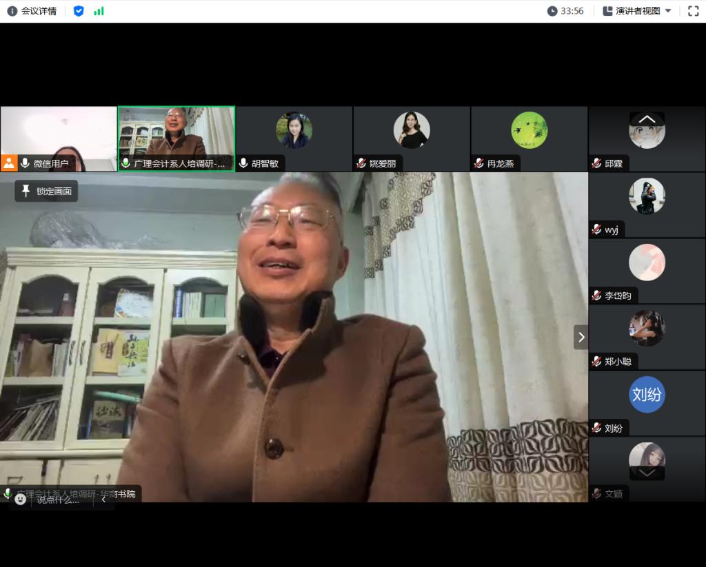 (通讯员:白雪)2024年2月1日,会计系举办了一场高水平的研讨会,邀请聚成股份华商书院高级讲师杨天林老师就课程设计、教学方法、会计学人才培养以及企业家特质等方面进行深入研讨和调研,旨在探讨与分享最新的教育理念和实践经验,为会计学人才的培养提供有益的指导。此次研讨会由会计系主任白雪主持,会计系有18位老师共同参与。