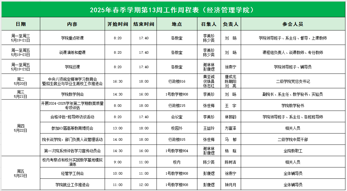 2025年春季学期第13周工作周程表