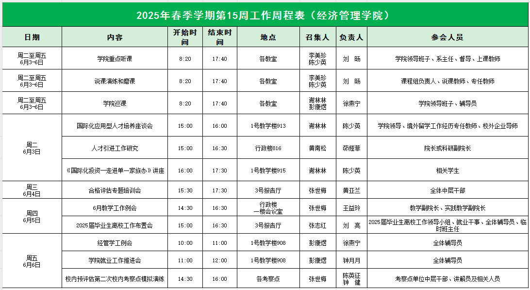 2025年春季学期第15周工作周程表