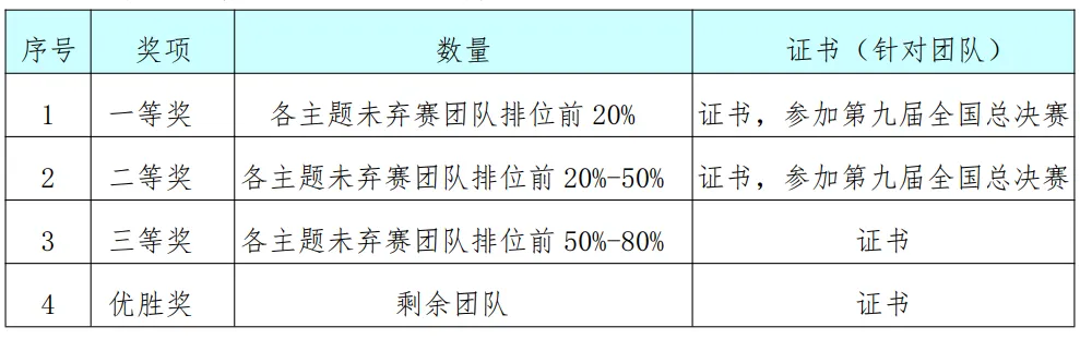 全省决赛的奖项设置如下表所示: