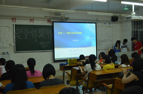 2013年5月25日晚,我班在2栋403教室召开了“安全伴我行,学会自我保护”的主题班会。首先播放了关于安全教育的视频短片,从人身、消防等多个角度诠释了应如何提高自身的安全意识。紧接着全班同学围绕着短片,进行了安全知识问答竞赛,也将本次主题班会推向了一个小高潮。